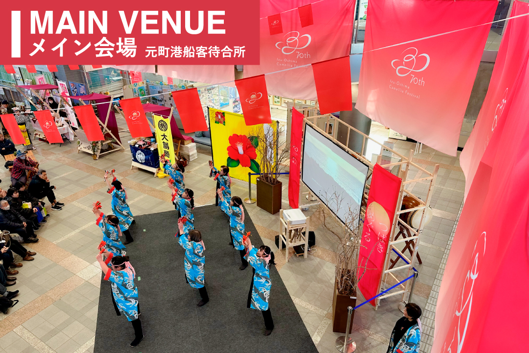 前回に引き続き、メイン会場は、元町港船客待合所となります。島の玄関口から各地を巡り歩きながら、春のおとずれとともに“おどる島・伊豆大島”をご堪能ください。