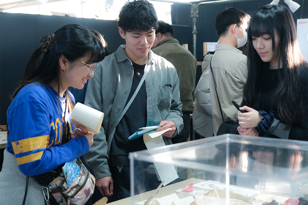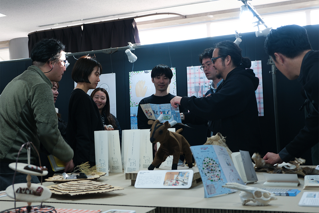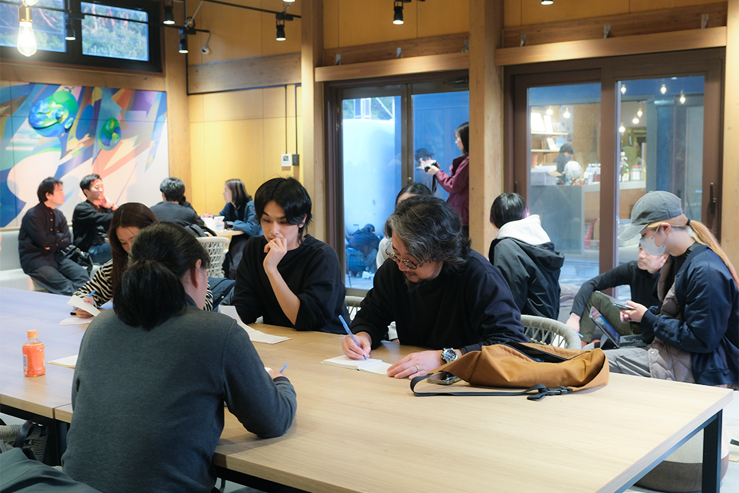 その後は、元町港船客待合所へ移動し、武蔵野美術大学と株式会社フロンティアコンサルティングによる共同研究展示「Nature Positive Living Lab」の特設展示やトークセッションを見学。