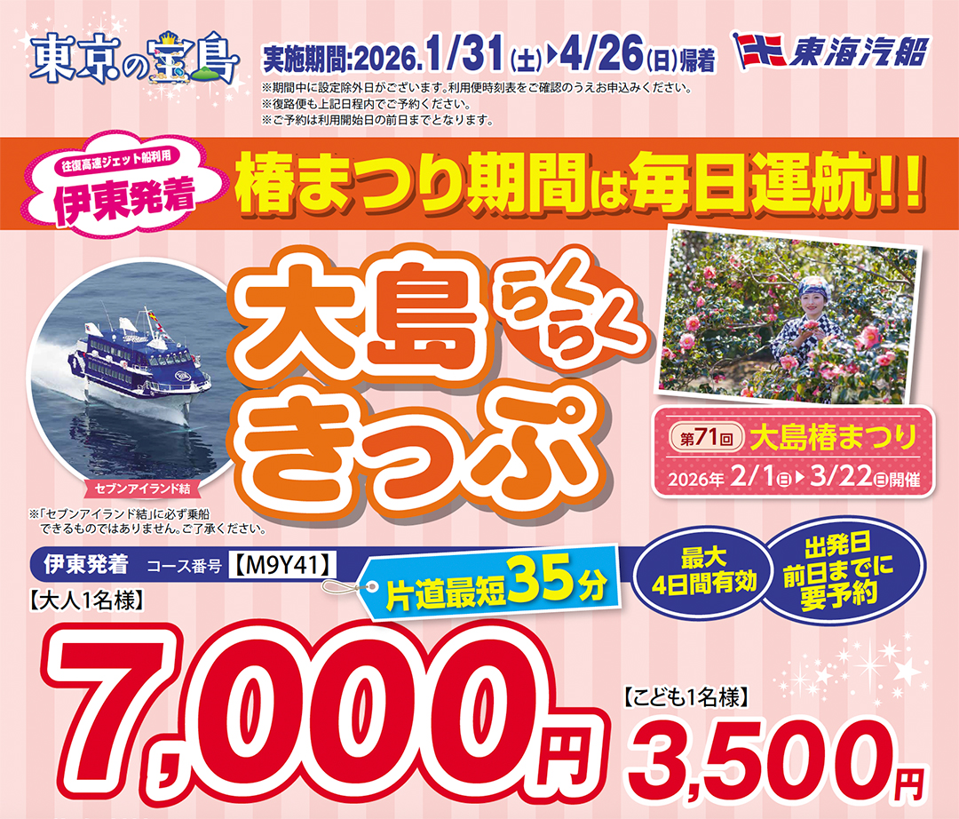 高速ジェット船往復乗船チケットや大型客船利用が大きく値下げされたプランが登場しました!超お得なプランで伊豆大島を思う存分満喫しよう!!