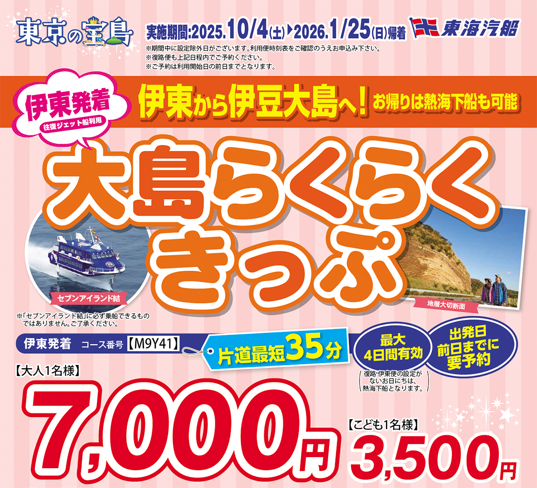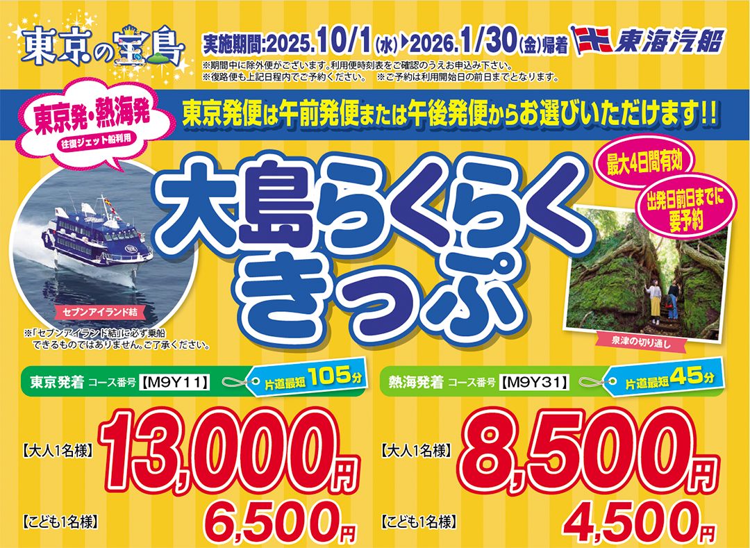 東京~大島(利島・新島・式根島・神津島)往復(2025/10/1~2026/1/30)