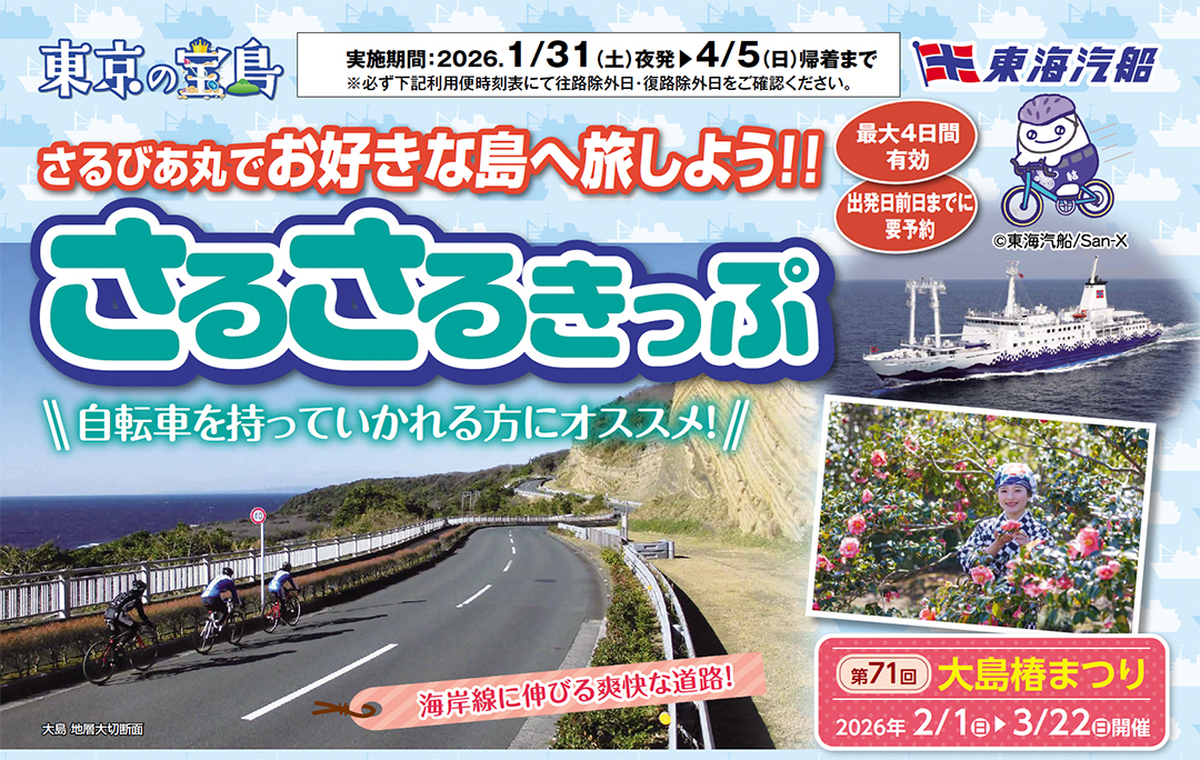 これまで電話や窓口での申込みが必要だった人気の往復乗船券「大島らくらくきっぷ」「さるさるきっぷ」が、オンライン予約サイト「skyticket」からご予約いただけるようになりました!