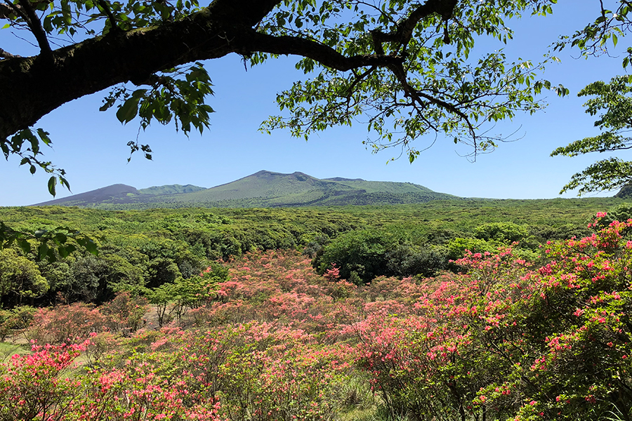 伊豆大島は東京から南に約120km。黒潮の影響を強く受ける太平洋上に浮かぶ伊豆諸島最大の島で、島の中央部には標高758mの三原山がそびえ、現在も火山活動を続けています。