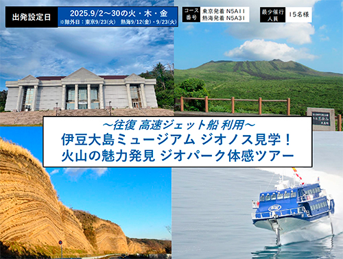 2025年7月にオープンした『伊豆大島ミュージアム ジオノス』をはじめ火山に関するスポットを効率よく巡るツアーです。